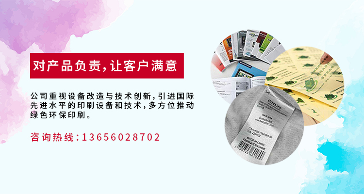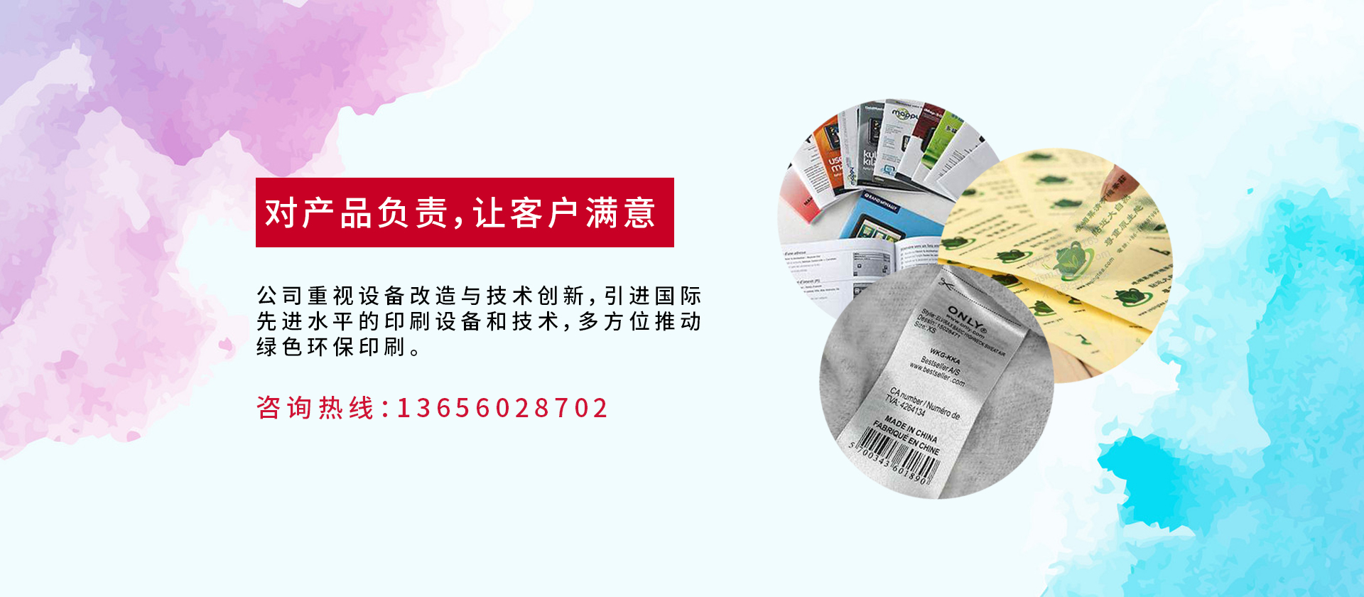 公司主營業(yè)務(wù)包括:不干膠印刷、說明書印刷、吊牌印刷、水洗標(biāo)印刷、彩盒印刷、3M雙面膠沖型等。經(jīng)營范圍:洗標(biāo)、緞帶標(biāo)、貼紙、吊牌、流水碼、不干膠、3M雙面膠、說明書、條碼、吸塑卡、彩盒、軟管帖、瓶貼、膜內(nèi)貼、收縮膜等卷裝貼紙。